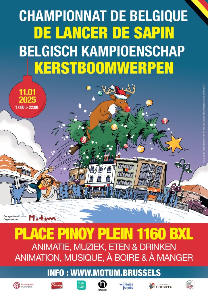 Le samedi 14 janvier 2023, la 7ème édition du Championnat de Belgique de lancer de Sapin de Noël a eu lieu sur la Place Pinoy d’Auderghem. ” C’était un championnat belge plein d’ambiance et de convivialité, qui clôture bien les fêtes de fin d’année. Nous n’avons pas obtenu une nouvelle distance record, mais c’était sans aucun doute une belle soirée malgré le mauvais temps!“, dit Samuel Serck, président de l’asbl Motum.